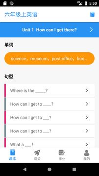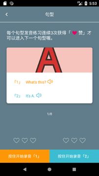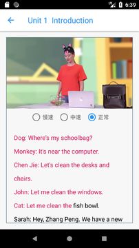 课本学习 该板块配备了与教材同步的多媒体课件,主要用于学生练习单词和句型的发音。学生发音通过AI语音识别技术进行实时打分,并将结果反馈给学生,以此帮助学生清晰了解学习情况并巩固学习成果。