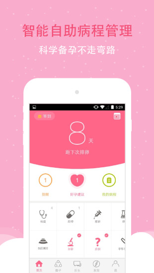 用户只需选择自己当前所处的阶段,添加治疗、用药、补充病历、提交反馈等信息,好孕帮就会提供智能诊治服务并发送好孕提醒。