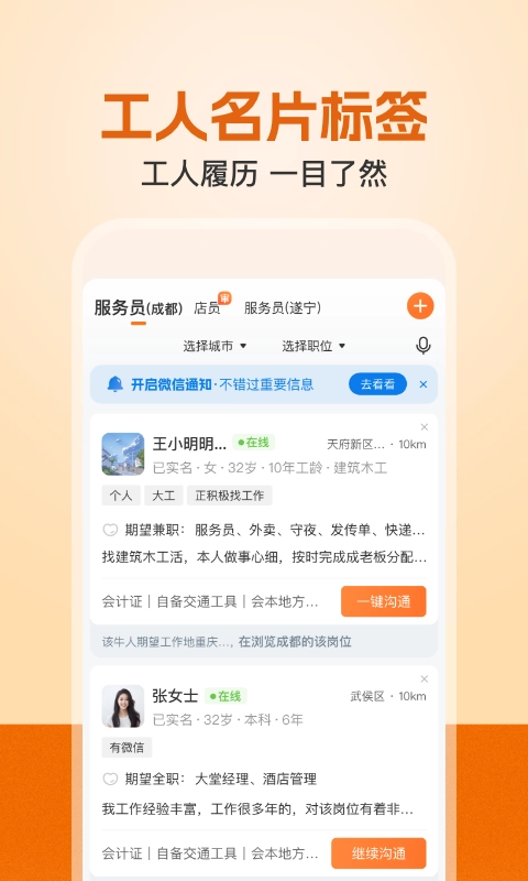 智能匹配功能的精准度比较高,用户反馈表示可以迅速找到契合自身需求的工作机会或合适工人。