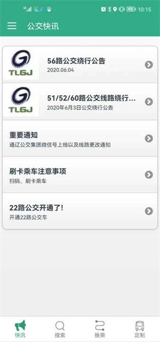 首先打开软件,在快讯板块能查看最新的公交动态,这能帮我们规避不少问题,像公交线路调整这类情况,在这里都能及时了解到。