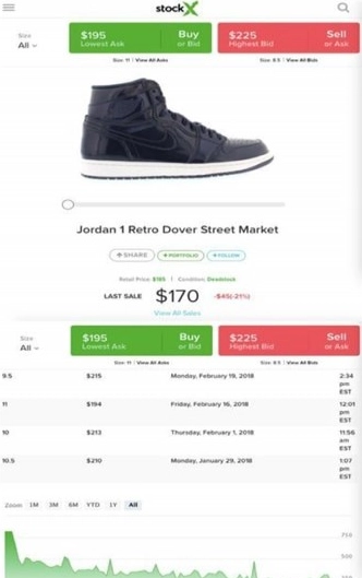 StockX 的功能类似于股票市场,是卖家和买家进行出价的场所。当买卖双方的价格达成一致时,交易就会自动完成。