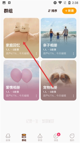 在群组页面里,找到并选中你想要操作的目标群组(比如“家庭回忆”这个群组),接着就能进入到该群组的详情页面了。
