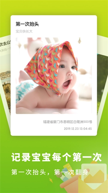 多种模板一键选择,从宝宝学会腹爬、玩躲猫猫到迈出人生第一步,让成长记录更轻松便捷,见证宝宝成长过程中的每一个珍贵瞬间。