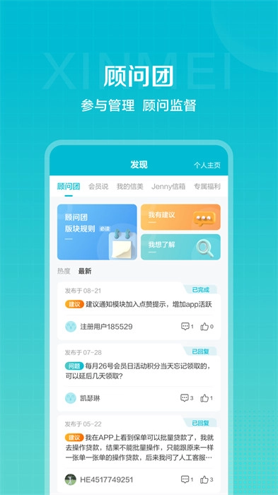 信美相互为用户带来优质体验:界面设计简洁直观,操作流程便捷顺畅,用户无需复杂学习即可快速上手。此外,平台配备智能客服与在线客服,随时为用户解决使用过程中遇到的各类问题。