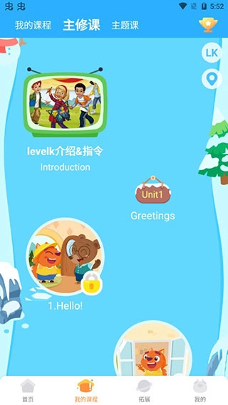 点击我的课程,孩子就可以开始学习了