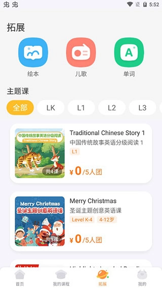 点击拓展,这里有一些课外活动,如绘本、儿歌等