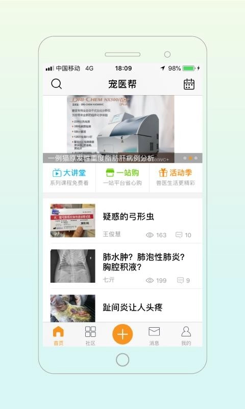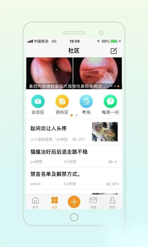 宠医帮是专为宠物医生打造的交流平台,宠物医生可在此与同行交流,学习更多治疗方法与建议,汇集行业经验,快速提升专业能力。平台设有会诊区、资料区、问答专区及专业讲堂课程,助力宠物医生获取丰富学习资源;通过文章分享,能即时阅读宠物相关知识,还可对文章进行评价,发表个人见解,与专业医生互动交流,提出疑惑时,行业知名专家在线答疑,轻松获得权威解答。此外,消息实时提醒功能让信息接收更及时,即时通讯更便捷。