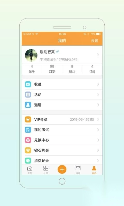 点击“我的”,就能立刻看到收藏、活动、考试、兑换等相关信息啦。