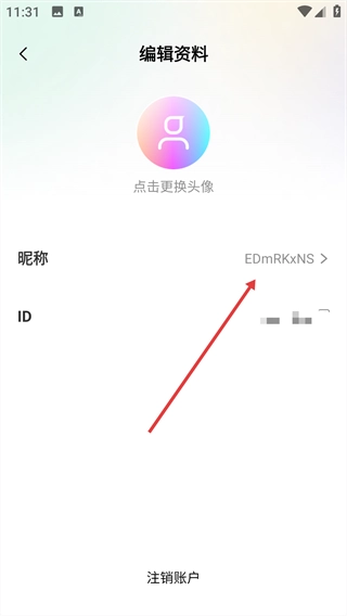 在编辑资料页面,点击【昵称】选项,即可对当前昵称执行修改操作。