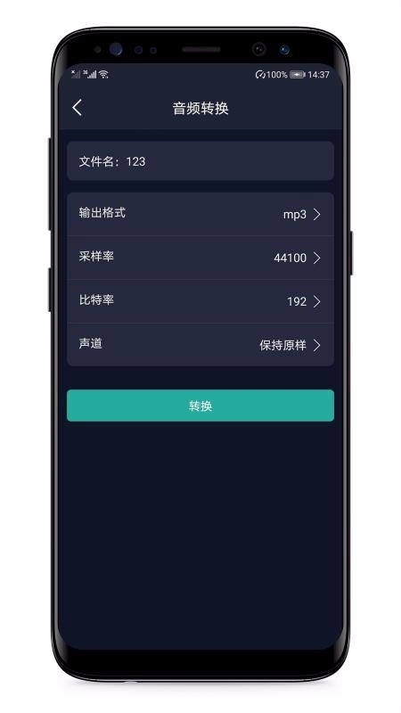手机版语音备忘录在音频转换功能上,支持对多种参数进行调整转换,除了可设置输出格式外,还能对采样速率、位速率、声道等参数进行转换操作。