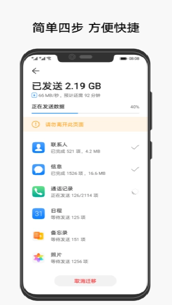 借助一键同步功能,能快速完成手机数据的迁移与同步,不必担心数据丢失问题。