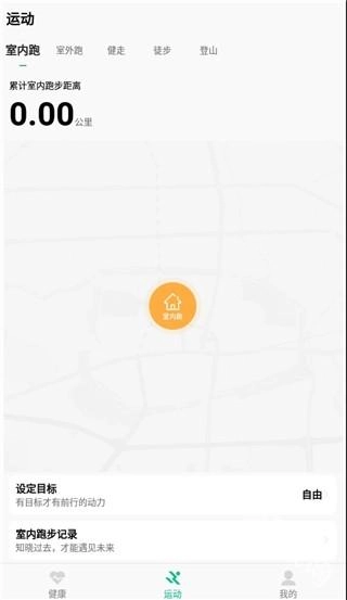 点击“运动”功能,能够协助用户记录室内跑、室外跑、健走、登山等各类运动的数据信息。