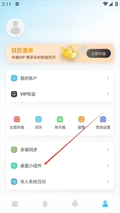 点击界面中的桌面小组件
