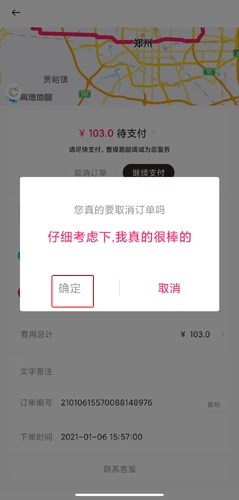 再次点击确定按钮即可取消订单。