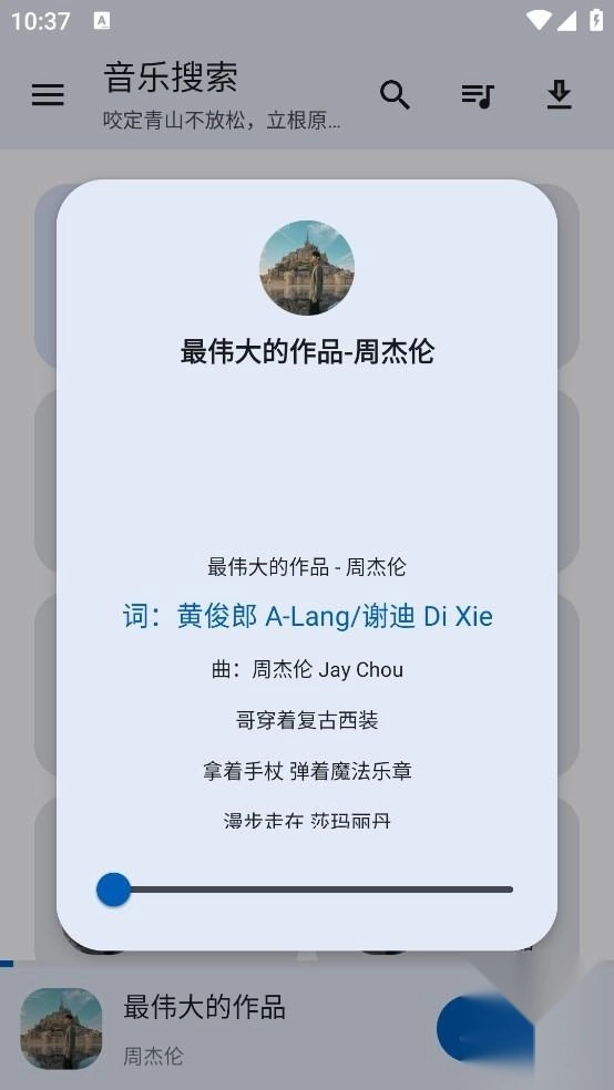 要是您想收听周杰伦的《最伟大的作品》,只要输入歌曲名称就行,搜索结果里除了这首歌曲,该专辑里的其他歌曲也会一起展示出来,大大增强了使用时的便捷程度。