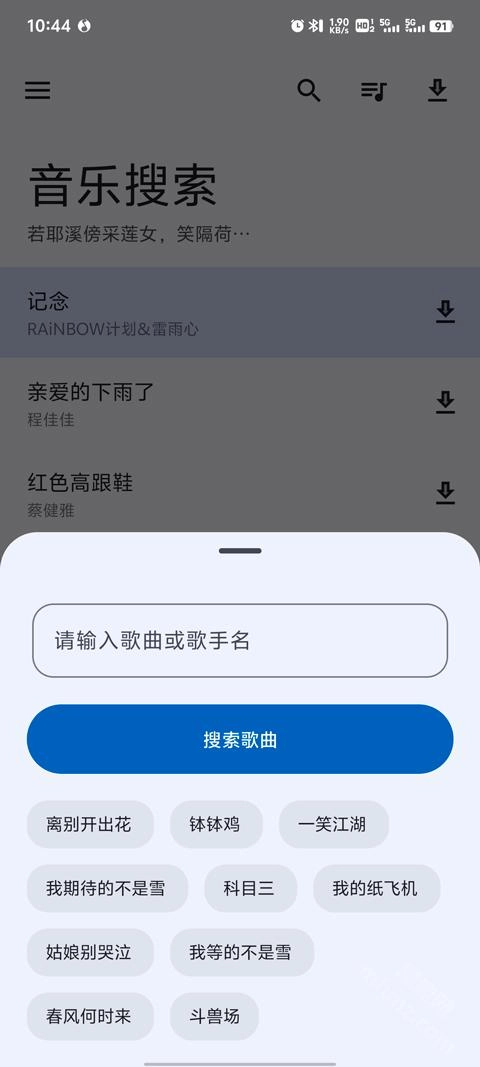 应用能够智能搜索并呈现出和您的搜索关键词相关的全部歌曲