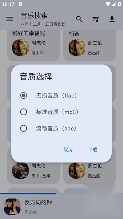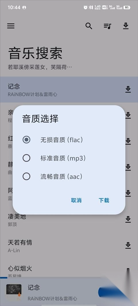 若您想在离线时收听音乐,只需点击对应按钮就行。该软件还支持选择不同音质,以此满足您对音质的多样化需求。