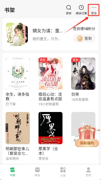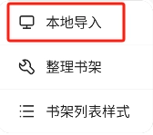 在书架页面点击右上角的“…”图标,随后在弹出的窗口里选择“本地导入”这一选项。
