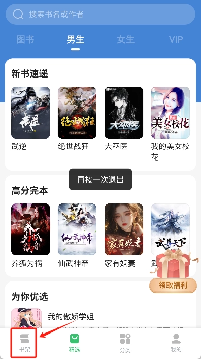 马上打开应用,在主界面底部的导航栏里找到“书架”选项并点击它。