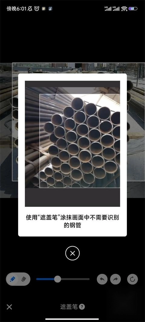 在拍照之前,您能够借助“遮盖笔”工具,把不需要进行识别的钢管部分涂抹遮盖起来。通过这种方式,能够降低误识别的概率,从而提升识别的精准度。
