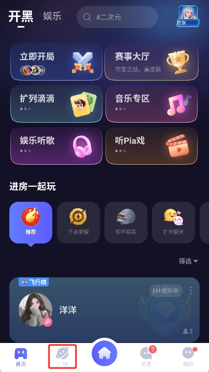 马上打开应用,进入主界面后,点击底部导航栏的“广场”图标。