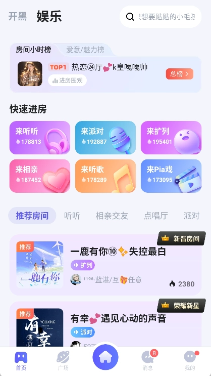 娱乐听听:这里有扩列交友、相亲互动、歌曲点唱、剧场PIA戏等丰富多样的声音玩法,期待你的探索。