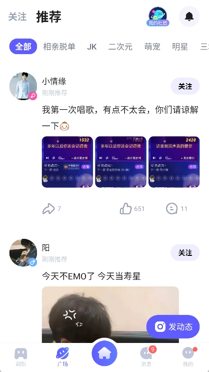 广场动态:分享趣味生活,感受他人的生活点滴,来这里与有趣的灵魂相遇。