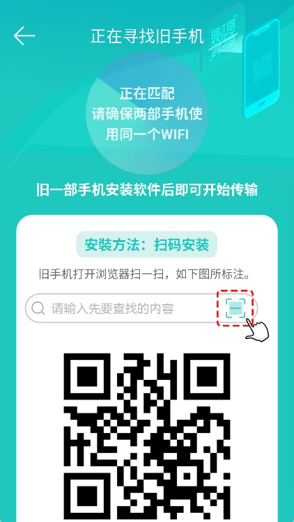 打开新手机上的一键换机软件,用它扫描旧手机显示的二维码,连接成功后就能开始传输数据了。