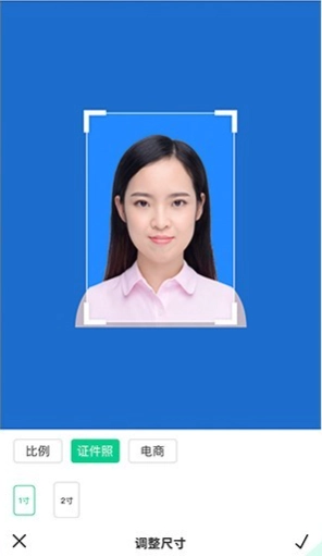 提供证件照制作服务,可更换底色(支持蓝、白、红三色),尺寸包含一寸和两寸;普通照片也能转为证件照。