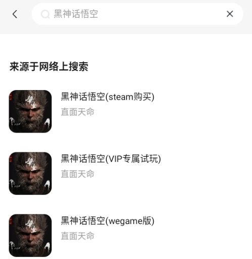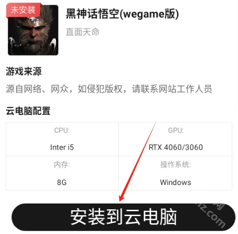 在大神云电脑里搜索《黑神话:悟空》,然后挑选和自己设备相匹配的游戏版本。