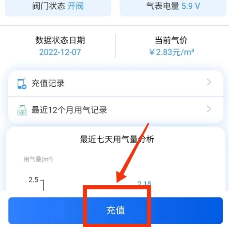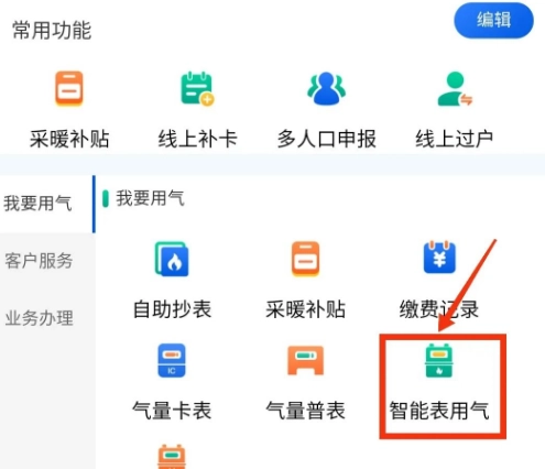 该绑定用户属于智能表用气类型,接下来我们以智能表充值操作作为示例进行演示:请先选择【智能表用气】选项,然后点击进入相关页面。