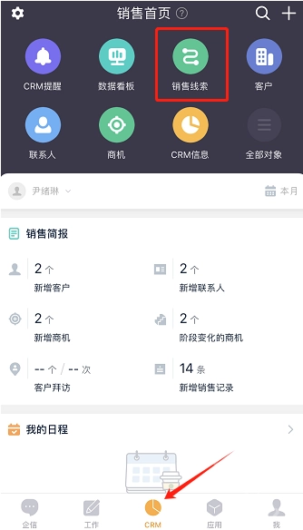 进入“CRM”模块——点击右上角“销售线索”