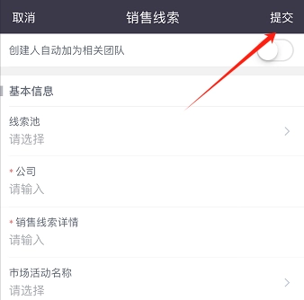 新建线索信息时,需按要求填写线索对象的相关信息(标注“*”的为必填项),之后点击“提交”按钮即可。