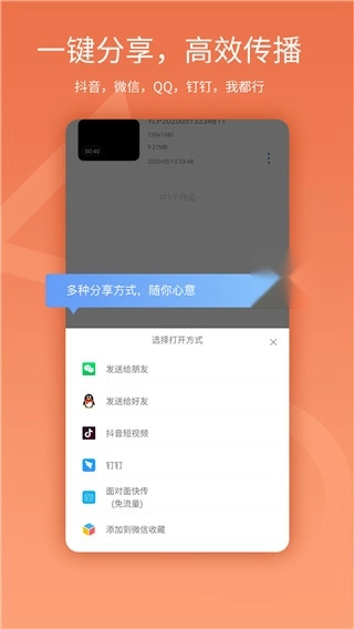 支持通过直接发送视频、上传至云端等多种分享途径,提高传播与分享的效率。