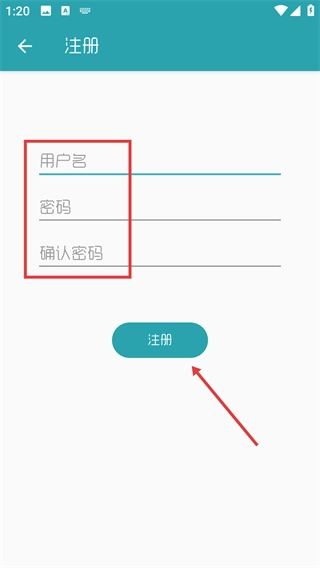 在注册页面填写用户名、密码以及确认密码,随后点击【注册】按钮,即可完成账号注册流程。