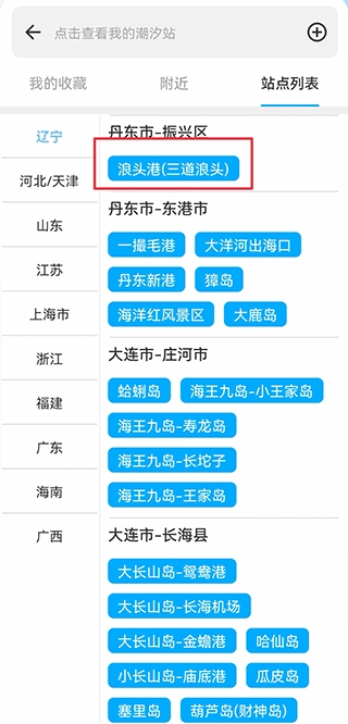 打开潮汐表,在搜索框中选择所需的潮汐站点。