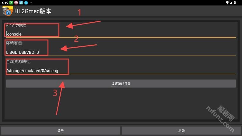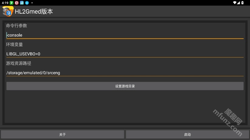 在首页设置命令行参数、运行环境和游戏资源路径等。
