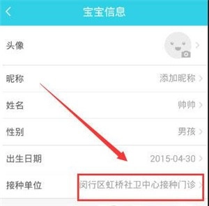 首先点击需要修改接种单位的宝宝头像,进入对应的页面,具体操作可参考下图。