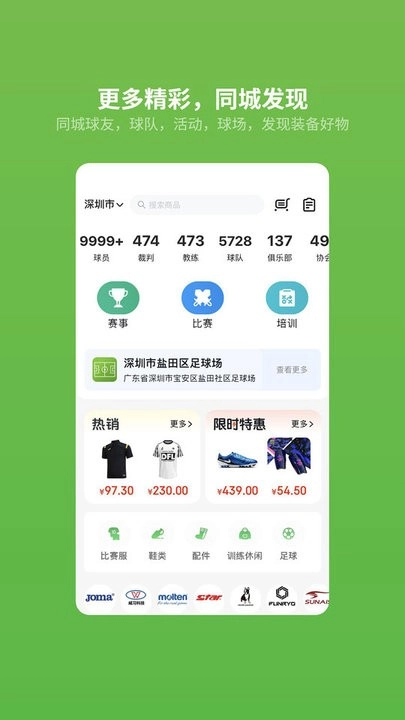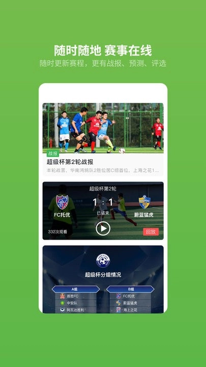 专业赛事管理功能,可便捷创办比赛、制定赛程、管理数据,自动生成积分榜、射手榜、助攻榜、红黄牌榜,实时分享比赛数据,还提供专业化赛事运营工具。