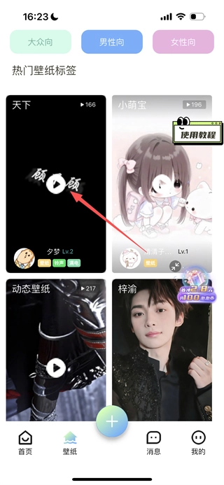 在空空鱼的首页,点击页面底部的“壁纸”选项,即可进入壁纸页面。