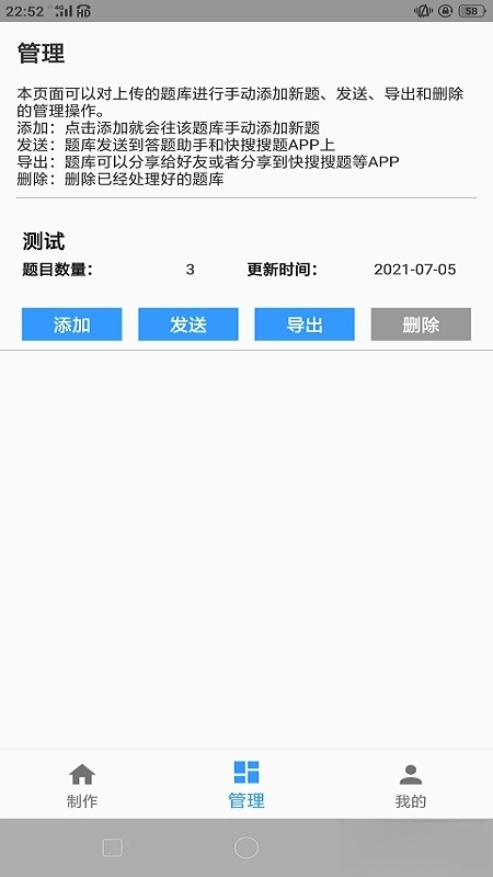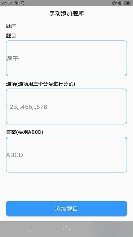 在线手动创作:除了通过导入文档来生成题库,该功能还允许用户在线手动制作题库。用户能够直接在软件界面中输入题目、选项、答案等相关信息,整个操作过程简单且便捷,即便没有现成的文档,也可以轻松创建出符合自身需求的个性化题库。