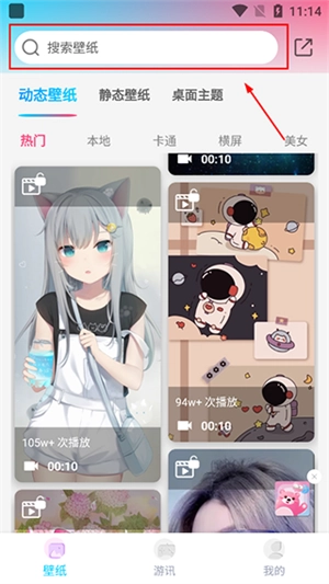 打开元壁纸,点击上方搜索查找自己喜欢的壁纸;