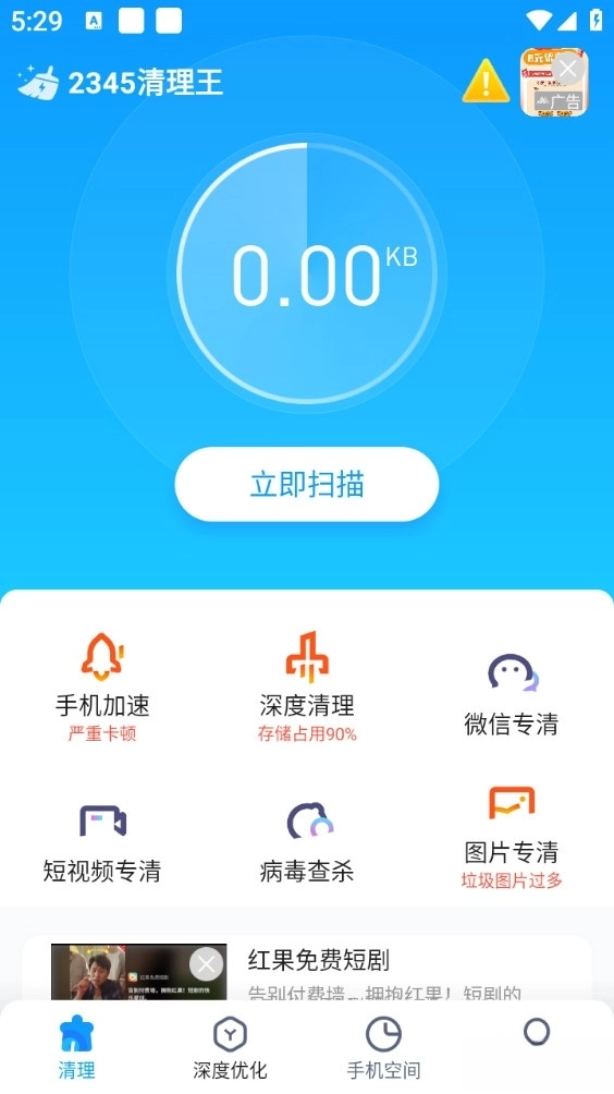 2345清理王是一款面向安卓用户的专业手机清理工具,搭载先进的垃圾扫描引擎,能够有效释放手机存储空间与内存,帮助解决设备卡顿、运行缓慢、耗电过快等问题。