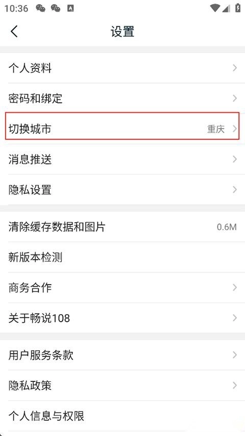 在设置页面找到并点击切换城市;