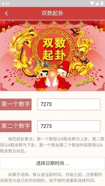梅花易数排盘是一款主打算命功能的手机应用。和市面上众多算命软件相比,它的独特之处在于提供免费的排盘占卜服务,并且结合了易经等传统运算方法,能让用户获得更精准的起卦结果。对这方面知识感兴趣的用户可以使用这款软件,但需注意切勿过度沉迷。