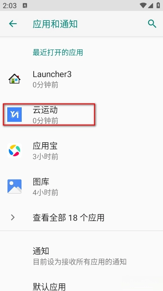 找到云运动点进去