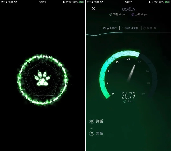 测速完成一次后,界面就会切换成新的主题样式,也就是绿色的猫爪风格。
