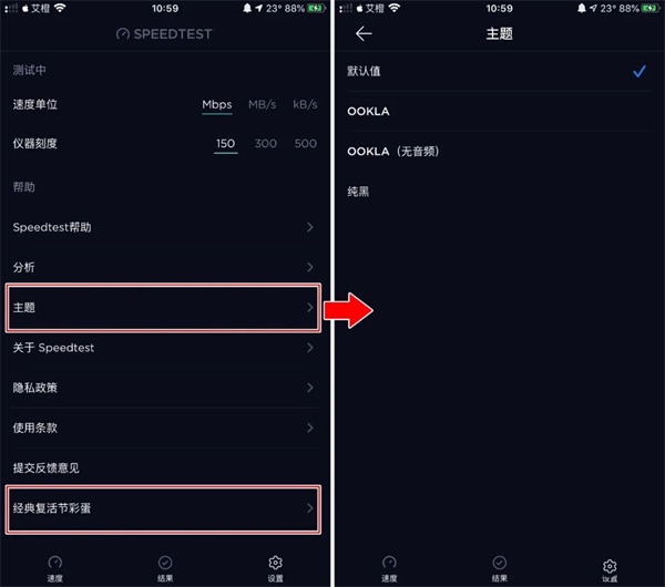 解锁主题后,你可以在设置里随时更换主题,还能查看更多关于Ookla的信息。