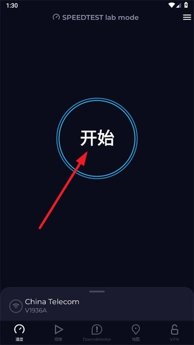 打开Speedtest就能看到经典的测速界面,点击“开始”按钮就能马上进行测速。