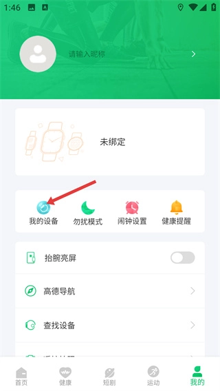 在个人中心页面,点击【我的设备】选项,进入设备管理相关界面,以准备开展设备绑定操作。